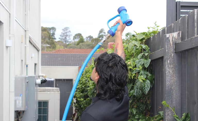 We use a soft washing technique, ideal for commercial and multi-unit strata properties. This method involves applying low-pressure water combined with biodegradable cleaning solutions to gently remove: